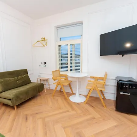 As comodidades dos quartos incluem TV e Wi-Fi, bem como conveniências como ferro de passar roupas e controle de temperatura. Este apartamento também está mobilado com escrivaninha. O banheiro tem banheira e chuveiro, bem como secador de cabelo e toalhas.